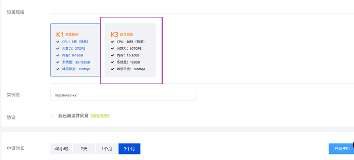 填写相关信息,内存建议选择16G的,其支持串口终端,32G的不支持。