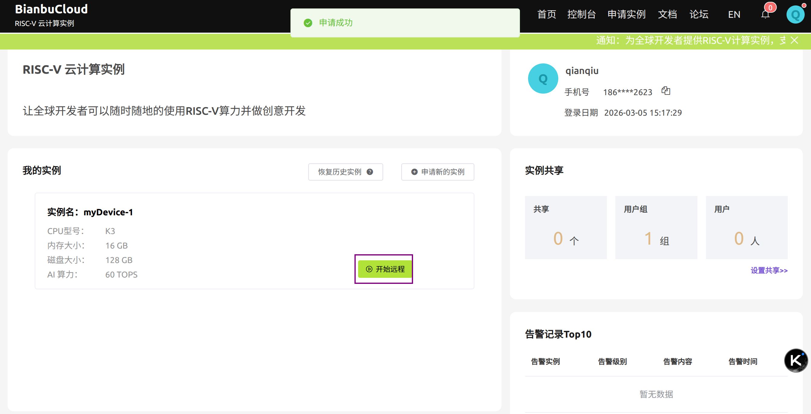 打开云平台页面:Bianbu Cloud 点击右上角 立刻注册。