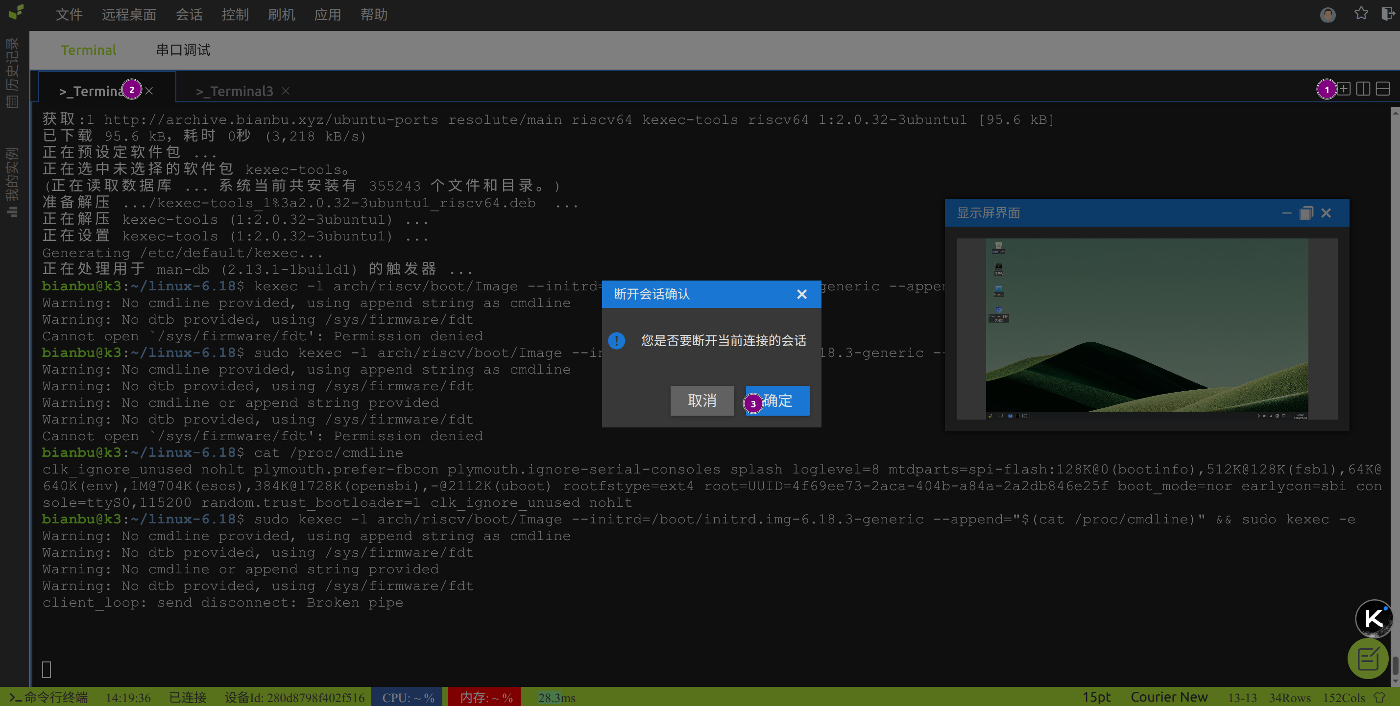 sudo kexec -l arch/riscv/boot/Image --initrd=/boot/initrd.img-6.18.3-generic --append="$(cat /proc/cmdline)" && sudo kexec -e