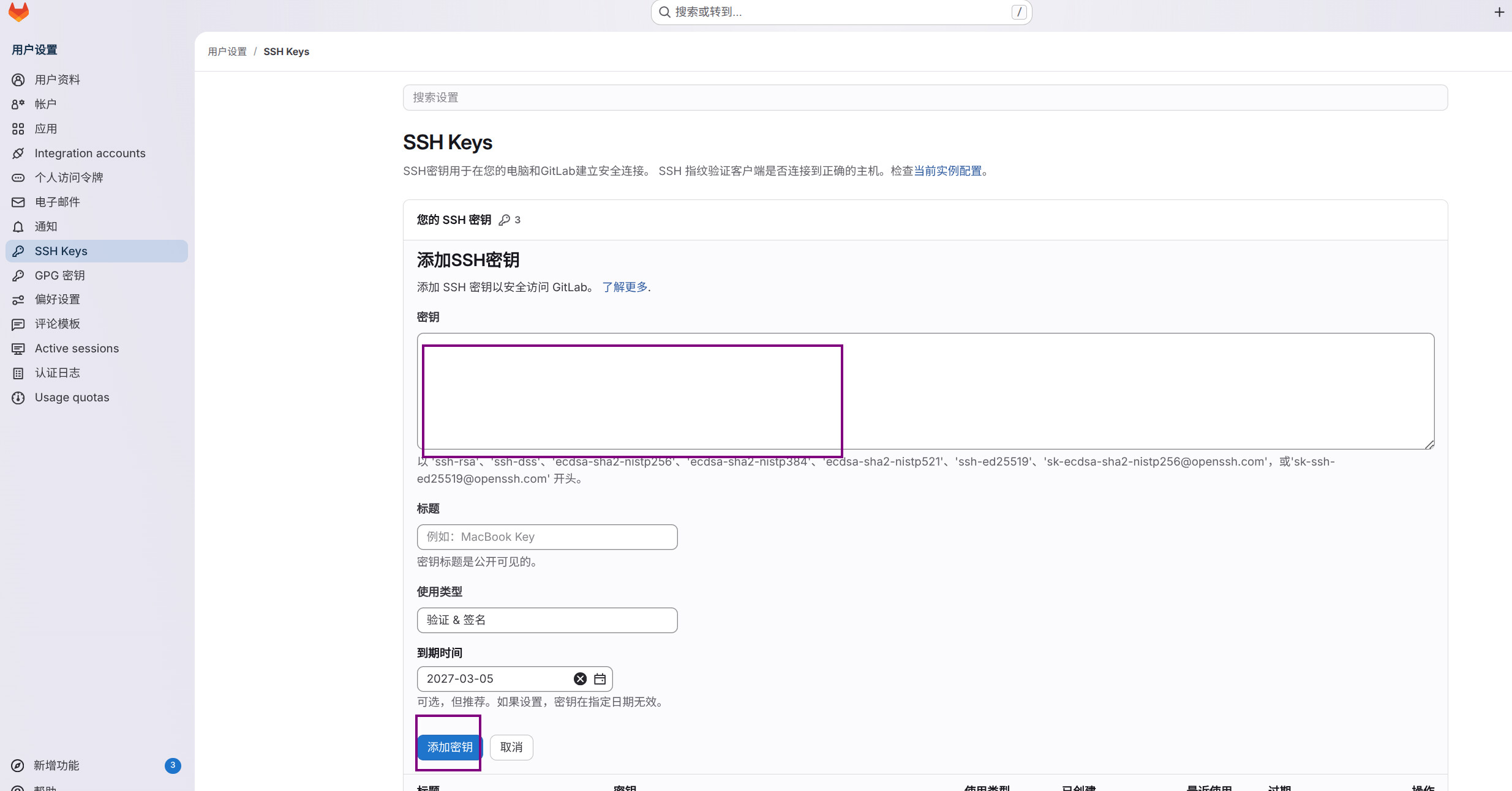将公钥内容添加到 https://git.spacemit.com/-/user_settings/ssh_keys/