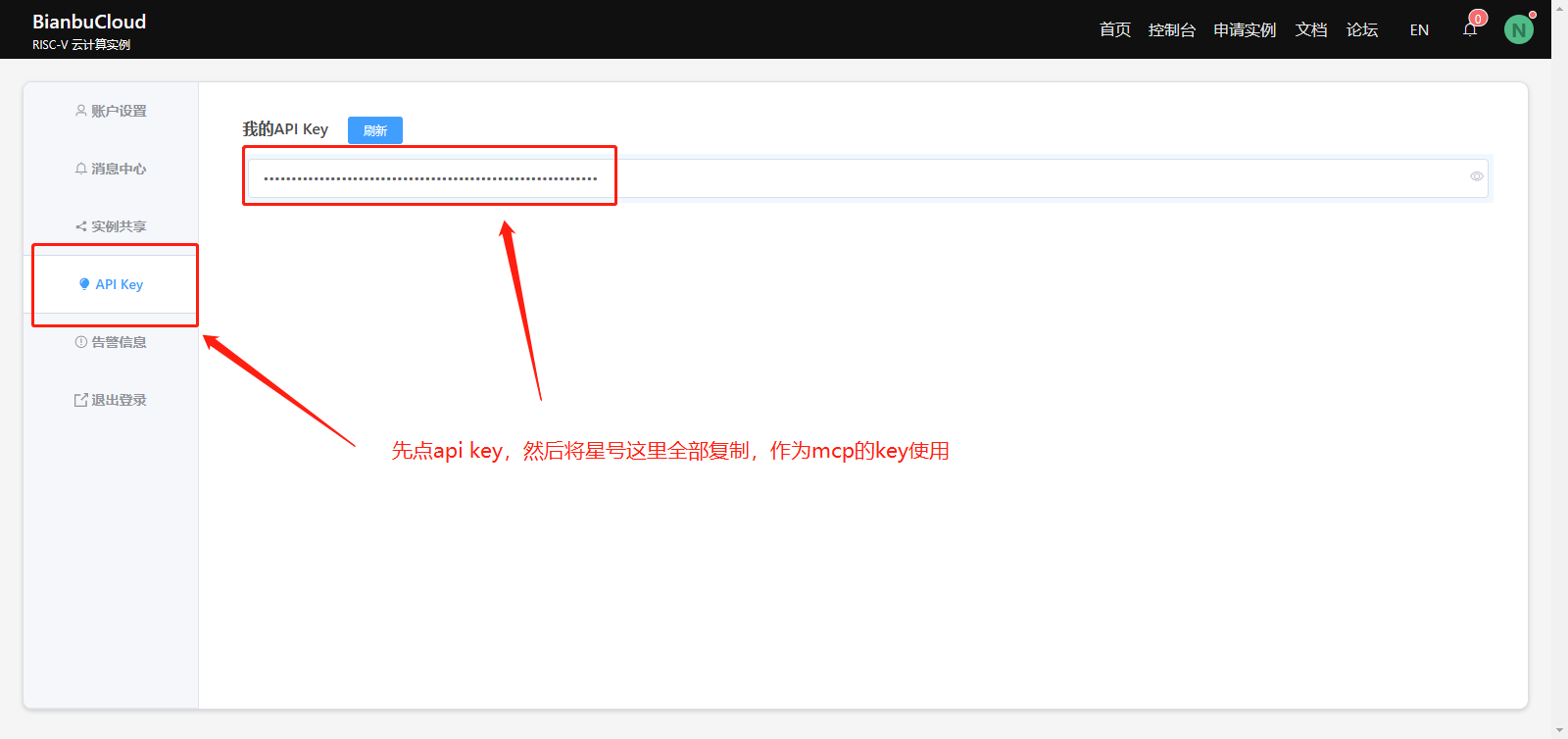 ② 打开 API Key 页面并复制 Key