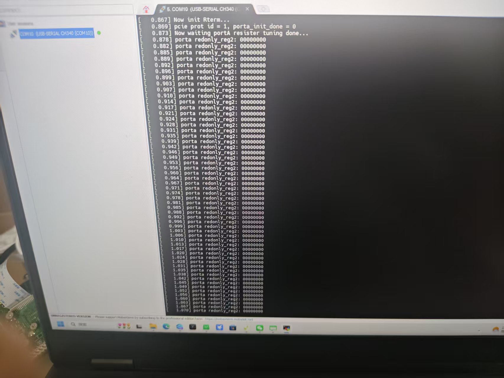 之前可以进系统的,现在突然卡死在这,串口一直返回porta redonly-reg2: 0000000不停,重新烧录镜像也烧不进去了