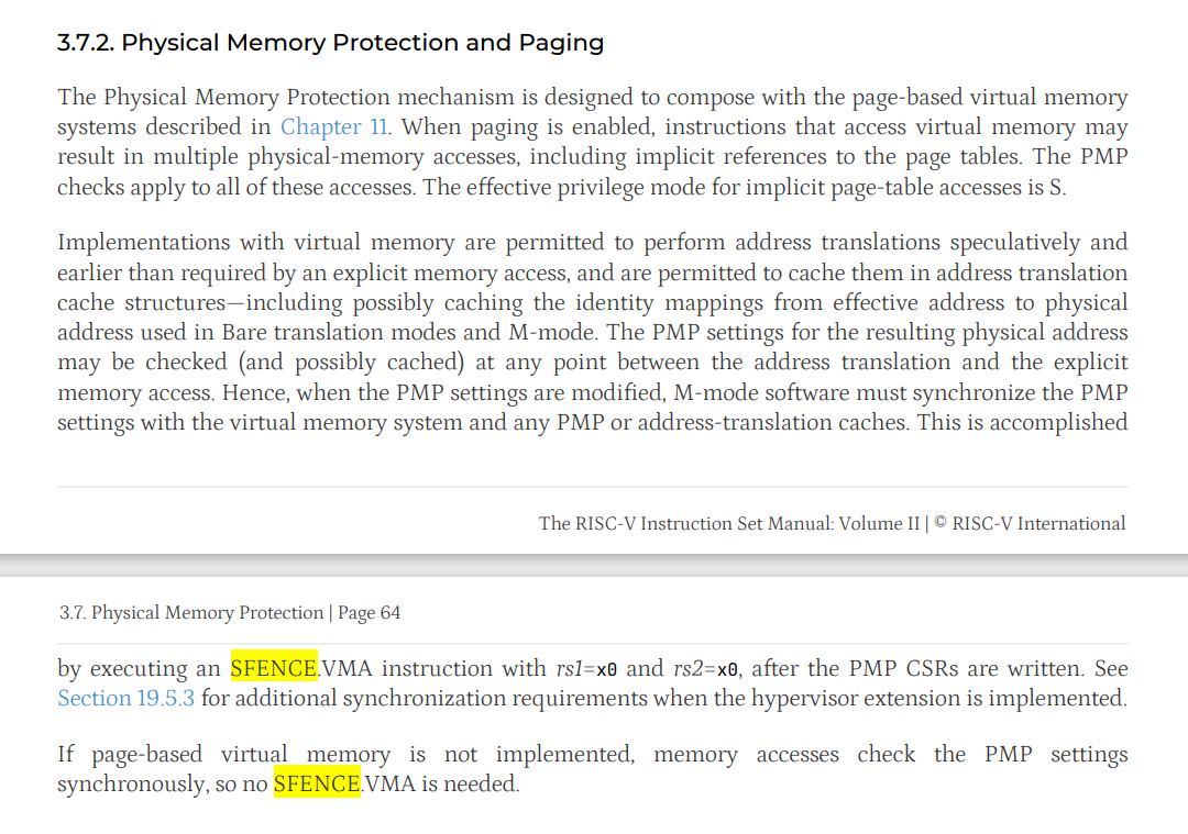【问题】rv spec没有说pmp是否需要被缓存,所以这款芯片是确定被缓存到tlb了吗?