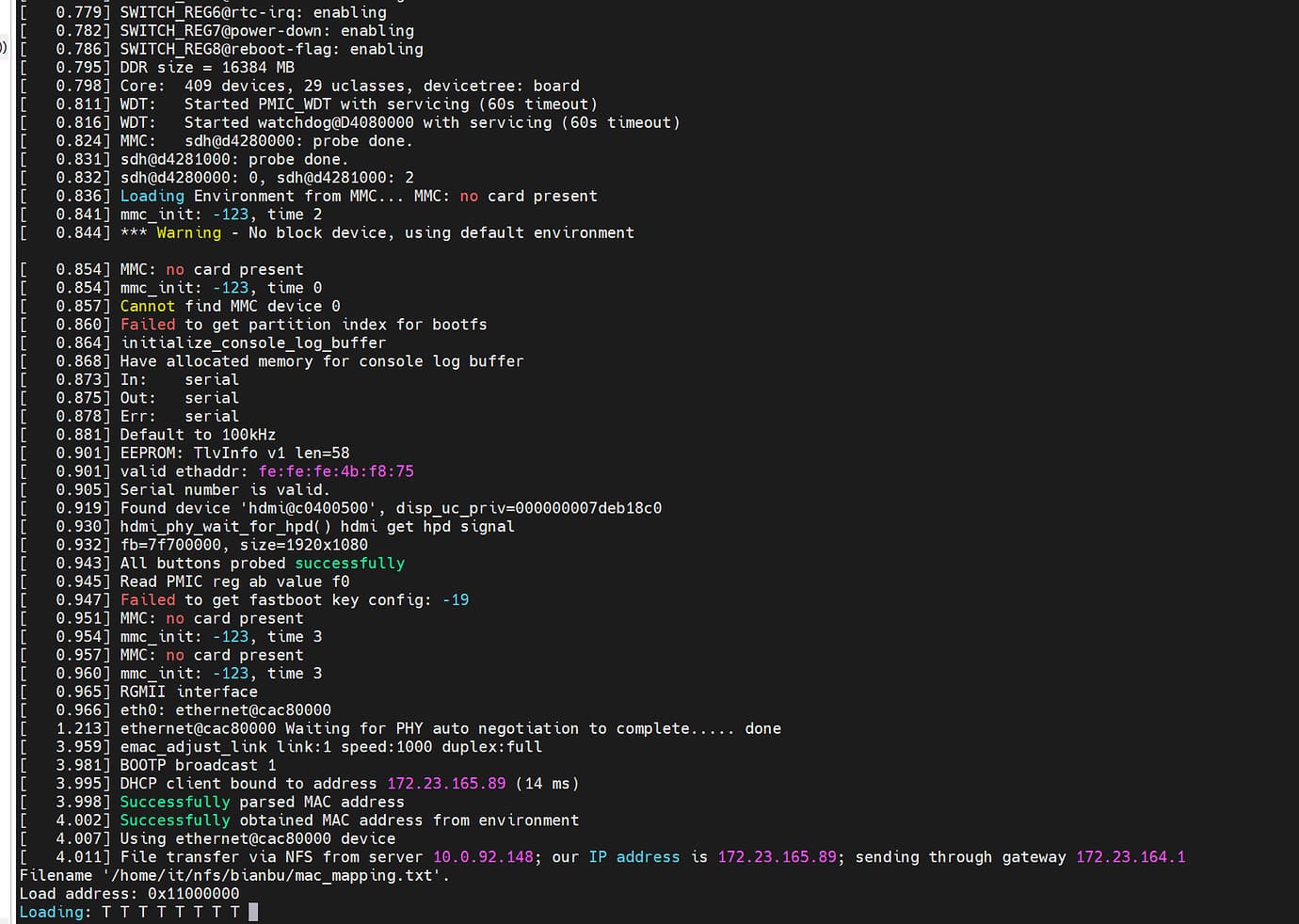 【问题】musepi pro断电关机后第二天从emmc无法启动,显示器显示图1内容后黑屏无信号,想着在sd卡里面烧个系统从sd卡启动,但是显示器直接黑屏,连接串口输出如图,请问是什么原因