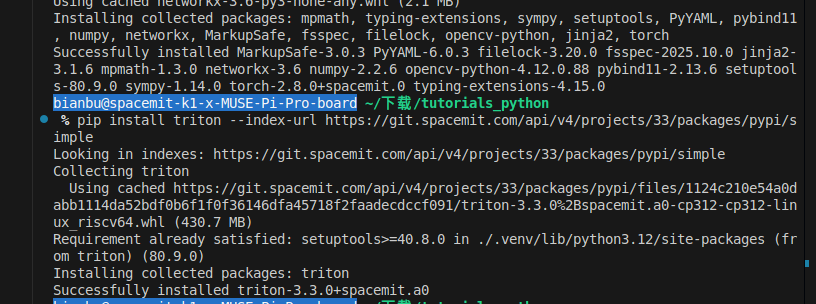 pip install PyYAML sympy torch opencv-python pybind11 --index-url https://git.spacemit.com/api/v4/projects/33/packages/pypi/simple