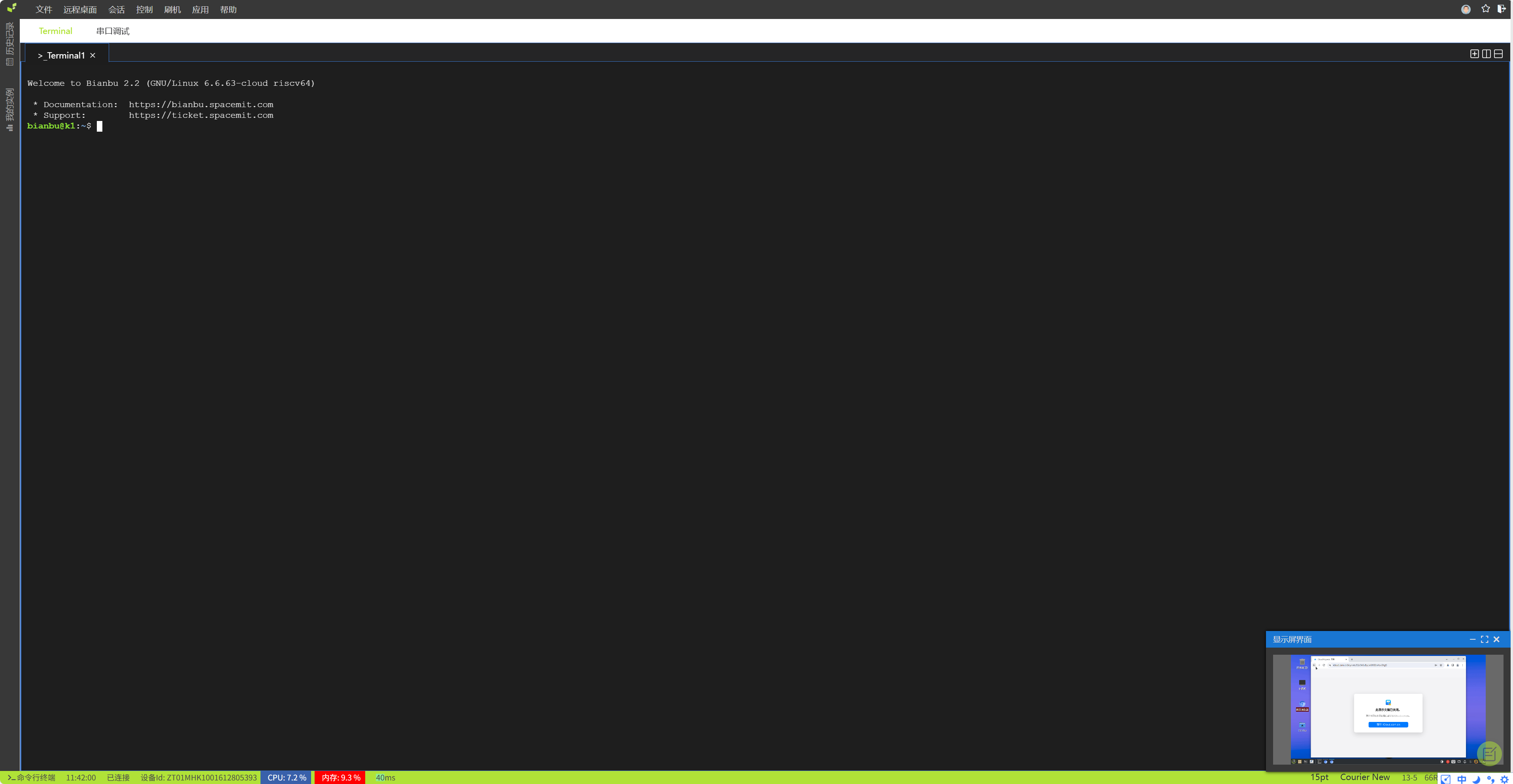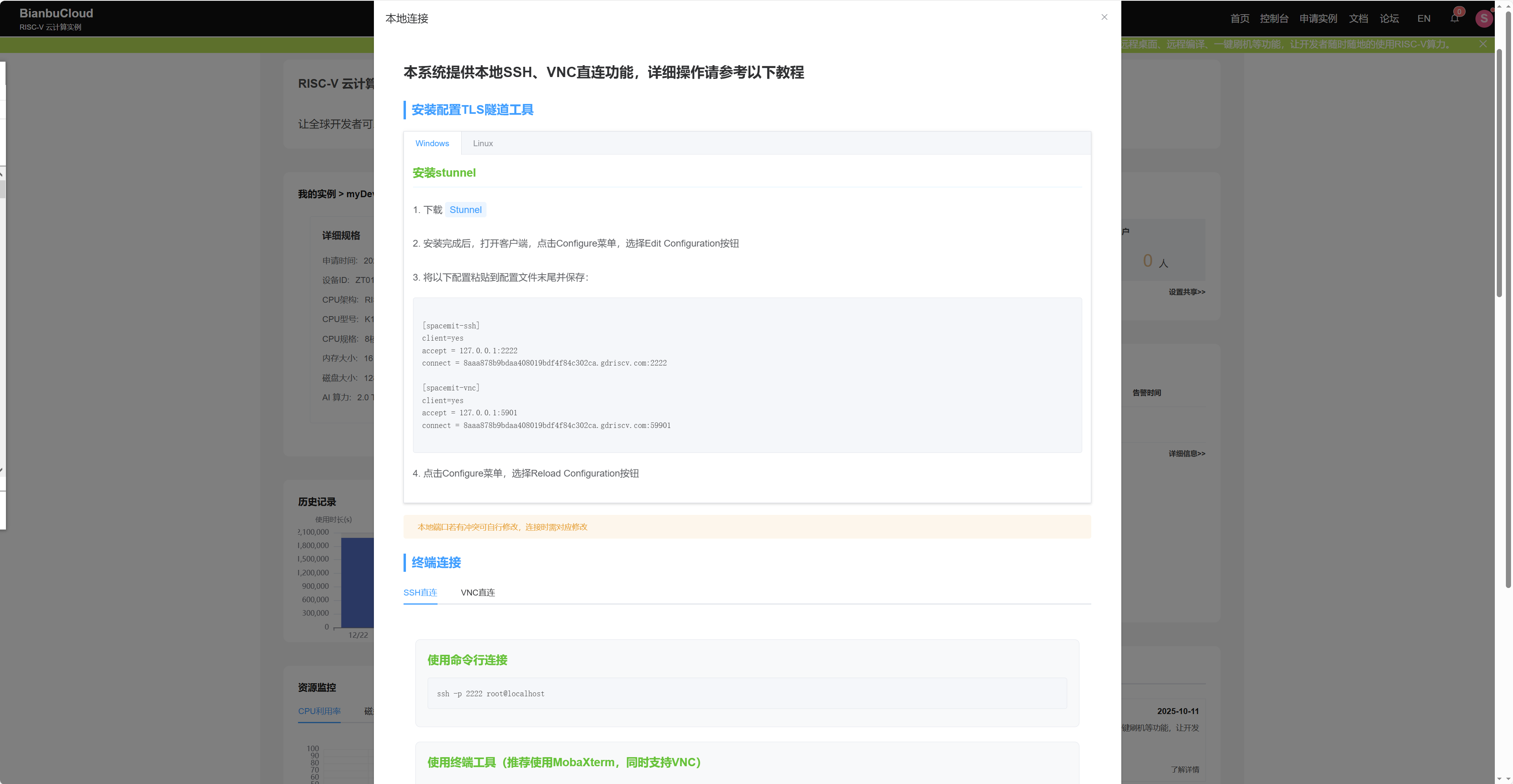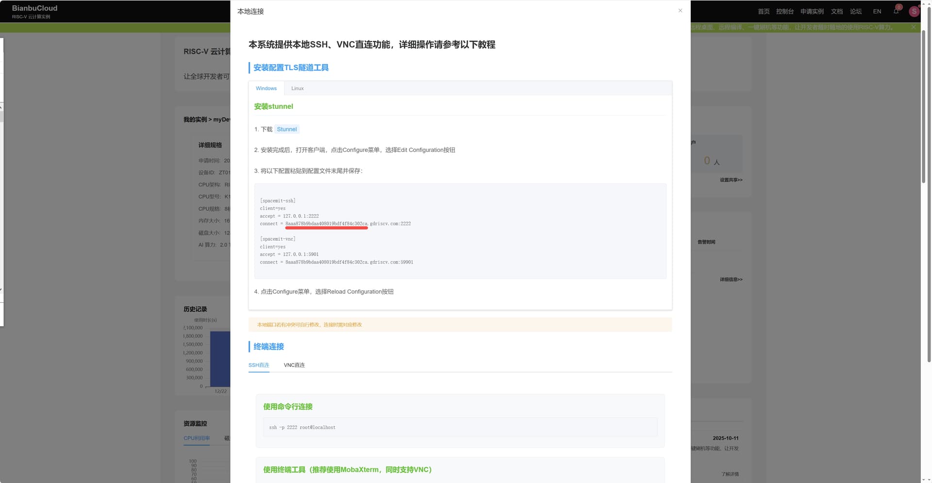 进入该界面,复制如红色下划线标注的BianbuCloud 为你的开发板实例动态生成的唯一子域名