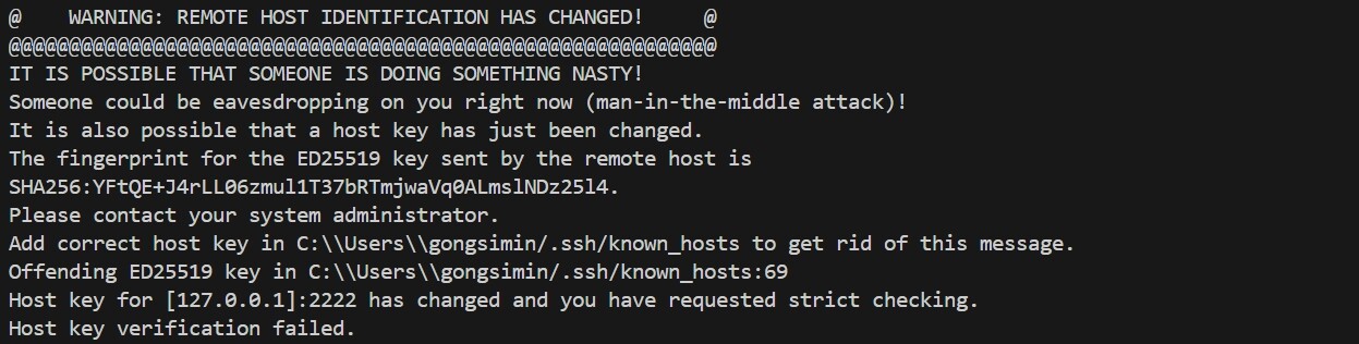 遇到这种问题,清理known_hosts文件,重新连接即可