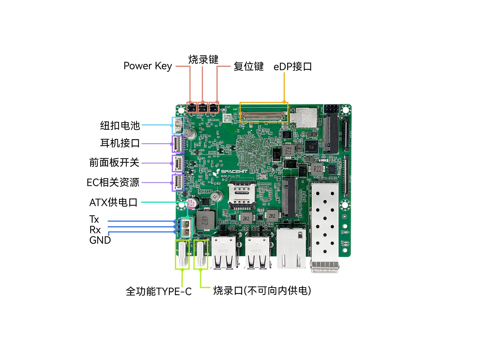 | 复位按键 RST | - 短按:电源复位,系统强制重启 |