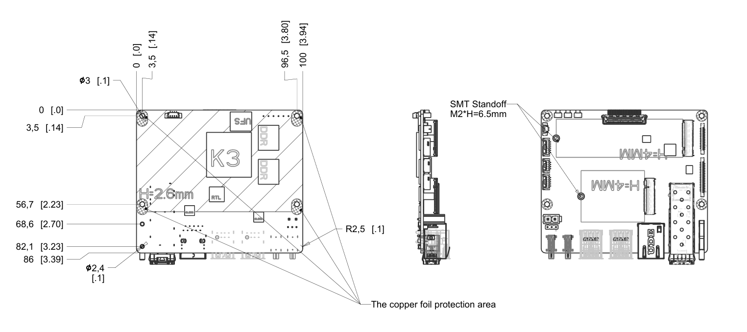 K3 Pico-ITX 配备 26P + 36P FPC 扩展接口。