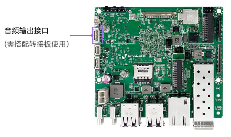 - 板上预留音频输出接口,可通过转接线连接到前面板插入 3.5mm 耳机