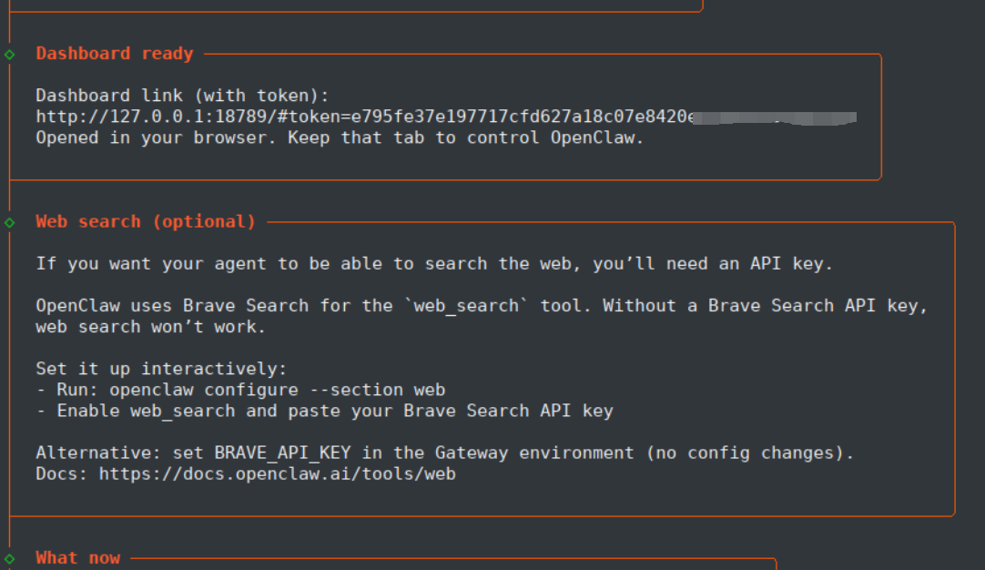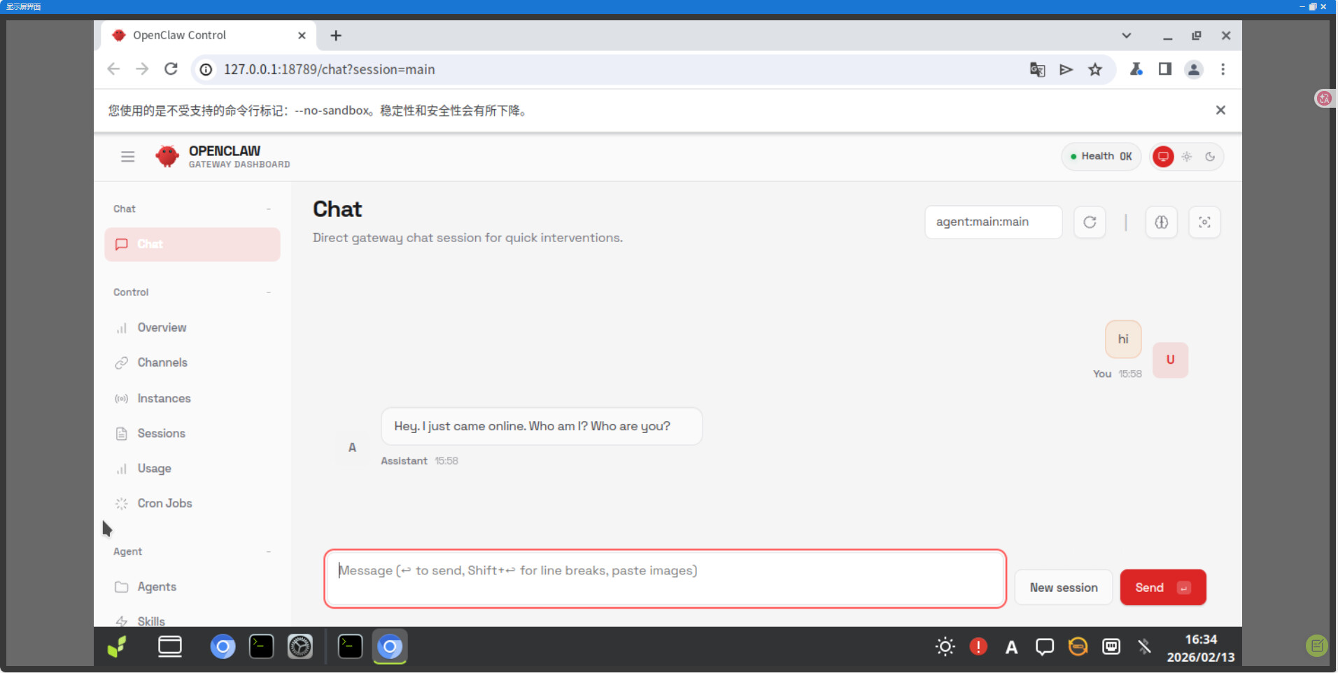 至此,恭喜你,完成基本的安装,可以开始使用Openclaw了